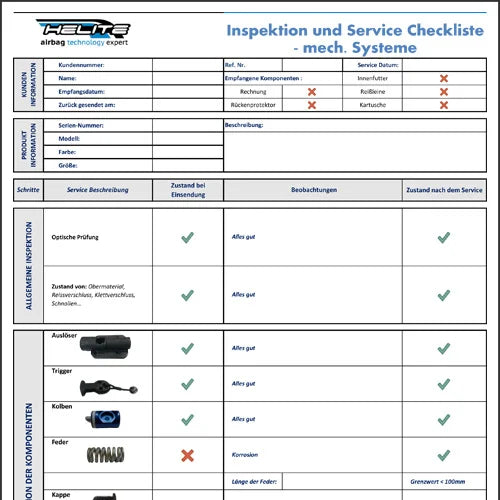 Ihre Airbag-Jacke oder Airbag-Weste wird von uns auf Funktion und Sicherheit geprüft.