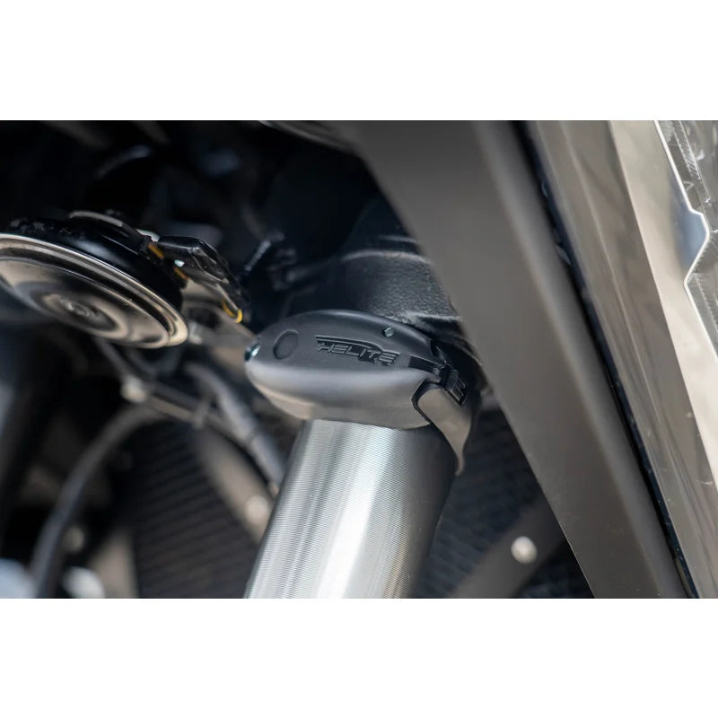 Der verbesserte Helite Gabelsensor bietet mit seiner erweiterten Akkulaufzeit, einem hochentwickelten Sturzerkennungs-Algorithmus und einem robusten Gehäuse ultimativen Schutz und Zuverlässigkeit für Motorradfahrer.